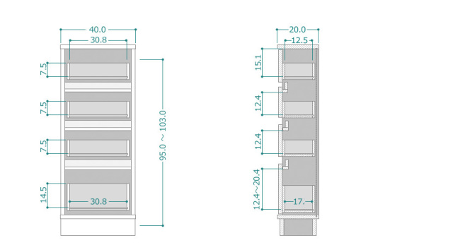 家具通販のコージールームセミオーダー家具 カウンター下収納 セミオーダーカウンター下収納LASCO(ラスコ) Sチェスト 幅40cm 奥行20cm 高さ60~103cm 全14色 価格: ¥39,800 (税込) [ポイント還元 398ポイント~] 販売期間: ☆高さをお選びください: 選択してください 60cm 61cm 62cm 63cm 64cm 65cm 66cm 67cm 68cm 69cm 70cm 71cm 72cm 73cm 74cm 75cm 76cm 77cm 78cm 79cm 80cm 81cm 82cm 83cm 84cm 85cm 86cm 87cm 88cm 89cm 90cm 91cm 92cm 93cm 94cm 95cm 96cm 97cm 98cm 99cm 100cm 101cm 102cm 103cm ☆カラーをお選びください: 選択してください ホワイト(W) マットホワイト(MW) シルクベージュ(SB) モードグレイ(MG) モードブラック(MB) マットブラック(BB) ホワイトシカモア(WS) ライトアッシュ(LA) リトモナチュラル(RN) ミディアムオーク(M) グレイウォールナット(GR) セピアウォールナット(SP) ブラックウォールナット(BW) ダークオーク(DB) ★お届け納期のご確認: 【受注生産品のため、発送まで4週間前後かかります】 選択してください 確認しました ★ご注文後、仕様の変更は承れません。今一度ご確認ください。: 選択してください 注文内容に間違いはありません ☆レビューでAmazonギフト券プレゼント!: 1.レビューを書く(500円分GET) 2.レビュー+写真(1000円分GET) 3.レビューを書かない 選択してください 1.レビューを書く 2.レビューと写真 3.書かない 数量: 個 ☆高さをお選びください在庫60cm在庫あり61cm在庫あり62cm在庫あり63cm在庫あり64cm在庫あり65cm在庫あり66cm在庫あり67cm在庫あり68cm在庫あり69cm在庫あり70cm在庫あり71cm在庫あり72cm在庫あり73cm在庫あり74cm在庫あり75cm在庫あり76cm在庫あり77cm在庫あり78cm在庫あり79cm在庫あり80cm在庫あり81cm在庫あり82cm在庫あり83cm在庫あり84cm在庫あり85cm在庫あり86cm在庫あり87cm在庫あり88cm在庫あり89cm在庫あり90cm在庫あり91cm在庫あり92cm在庫あり93cm在庫あり94cm在庫あり95cm在庫あり96cm在庫あり97cm在庫あり98cm在庫あり99cm在庫あり100cm在庫あり101cm在庫あり102cm在庫あり103cm在庫あり 4.5 (2件) 商品サイズ 商品の問い合わせ お買い物ガイド よくあるご質問 配送配達方法について 返品返金保証について お支払い方法について 返品・キャンセルについて サイズ・仕様表 商品番号 CTRUK-SH20-77103 商品名 セミオーダーカウンター下収納LASCO(ラスコ) Sチェスト 幅40cm 奥行20cm 高さ60~103cm 全14色 カラー 全14色 商品サイズ 幅40.0×奥行20.0×高さ60.0~103.0(cm) 内寸サイズ ページ下寸法図参照 材質 前面・天板 フラッシュ構造合板+オレフィンシート/ポリエステル/耐摩耗性強化シート 本体 フラッシュ構造合板+ EBコートシート 原産国 日本製(国産品) 備考 届いて直ぐに使える 完成品 天板耐荷重:10kg 引出し耐荷重:6kg 開梱設置・梱包材引取りサービスにてお届けします。 ※北海道・沖縄・離島へのお届けには別途追加送料がかかります。 商品説明 カウンターの高さにジャストフィット 高さを60~103cmまで選べるカウンター下ラック チェスト 幅40cm 奥行20cm 木目色は木の質感をリアルに再現したつや消しの表面。本体、前面が同じ柄です。 ホワイトの前面は艶有りの鏡面仕上げです。 本体の色は、ホワイトとマットホワイトは「艶無しのホワイト単色」 シルクベージュとモードグレイは「ライトグレイ単色」 ブラックとモードブラックは「艶無しのブラック単色」となります。 全ての引き出しには最後までスムーズに引き出せるベアリング式フルスライドレールが付いています。 引き出しは耐久性に優れた箱組構造なので、長く快適にご使用いただけます。 取っ手が無いスッキリとしたフラットデザイン。 飛び出した部分が無いので安全です。 引き出し上の隙間に手を差し入れるだけでスムーズに開閉できます。 前板・天板の縁は境目が目立たないドイツ・ホマッグ社のエアテック仕上げ。 まるで塗装の様に滑らかで高級感にあふれ、触り心地も優しくやわらかです。 境目がほとんど無いので、湿気や水気に強く、キッチン収納としても最適です。 棚はピン付きの棚ダボで固定されているため落下しにくく、また、地震の時には棚の飛び出しを防いでくれます。 ダボ穴は直径3mmと小さいので、穴が目立ちません。 台輪の後ろ側には巾木を避けることができるように1cmの隙間が開いているので、壁に付けて設置ができます。 各ユニットがボルトでぴったり接続できるようになっており、接続部のネジ頭を隠せるキャップが付いています。 お客様の声 まろりん様 投稿日:2025年09月23日 おすすめ度: カウンターに繋がる横にある電話台したの収納として購入。両サイドが白壁なので合わせマットホワイトをチョイス。以前は既製品の棚を使用していましたが、引き出しがやはりセミオーダーだとしっかりしていて使いやすいです。奥行き20cmの場所なので沢山は収納出来ませんが、細々した物が収まり使いやすいです!5mm私の計測ミスがあり…?ぐら付きが出来てしまいましたが、上部に段ボールをはめ込みぐらつき解消。やってしまいました。計測緊張しますね。 お店からのコメント この度は「セミオーダーカウンター下収